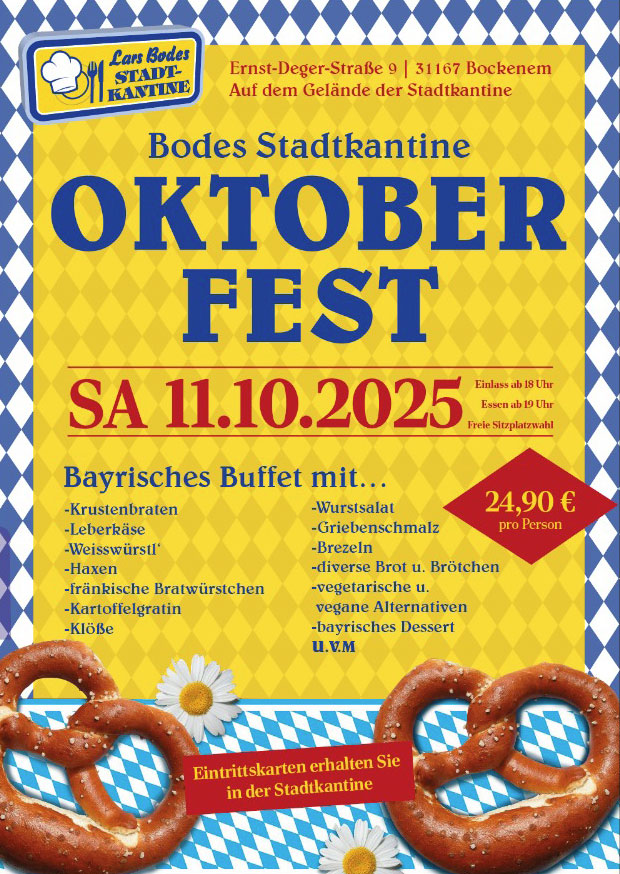 Am 11.10.2025 ab 18:00 Uhr startet Bodes erstes Stadtkantinen-Oktoberfest auf dem Gelände der Stadtkantine.